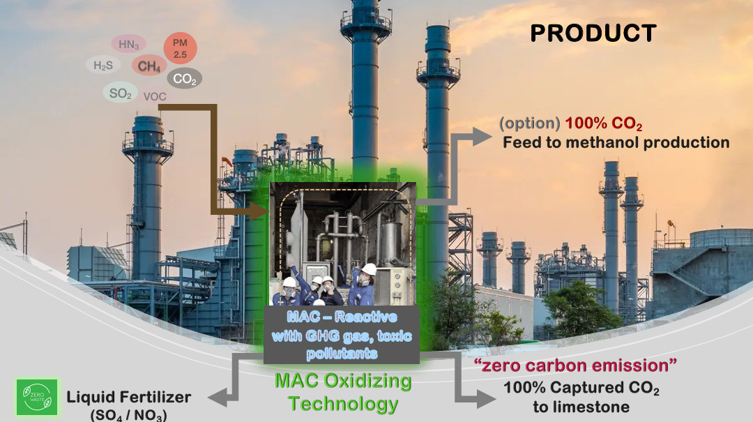 Introducing “MAC Oxidizing Technology” for gas treatment process to reduce greenhouse gasses and toxic pollutants.